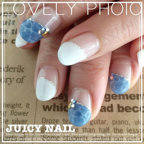 斜めフレンチもホワイト×ネイビーのマリンカラーにすれば、大人の夏ネイルになりますね